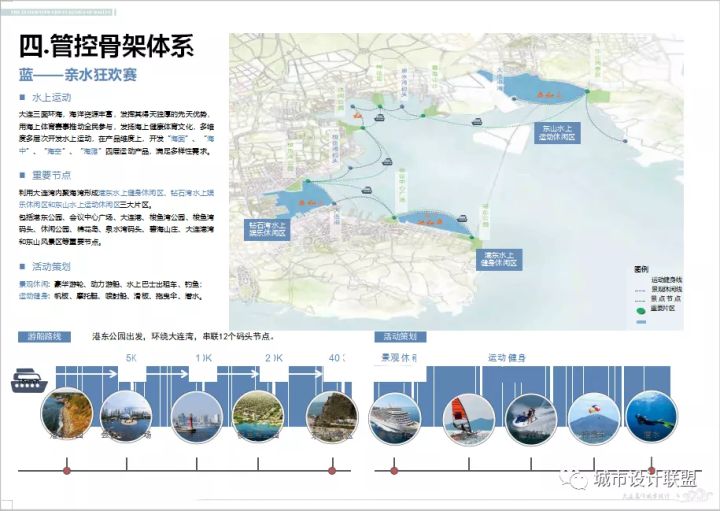 为了更好地完成大连总体设计,大连市从海岸、街道、遗产、地标、活动等方面点亮湾区,具体落实湾区+五维策略。