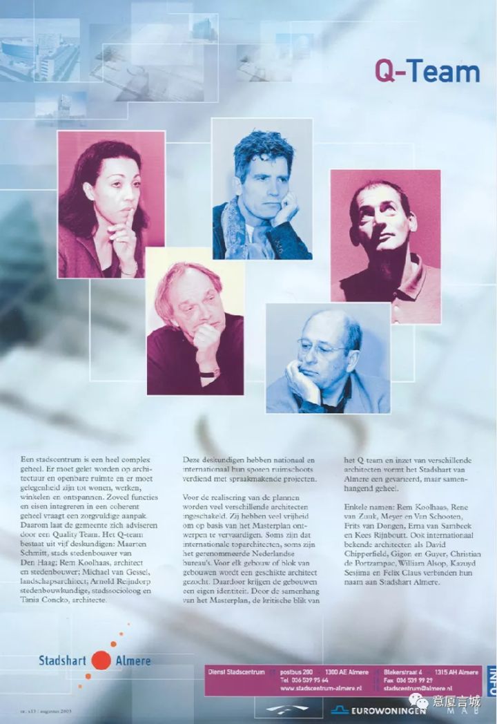 在整个过程中,Q-Team(质量团队)承担了极为重要的角色。Q-Team由城市规划、城市设计、建筑学和社会学方面的专家组成,其中包括总体规划建筑师:雷姆·库哈斯(Rem Koolhaas)和弗洛里斯·阿尔克马德(Floris Alkemade)。