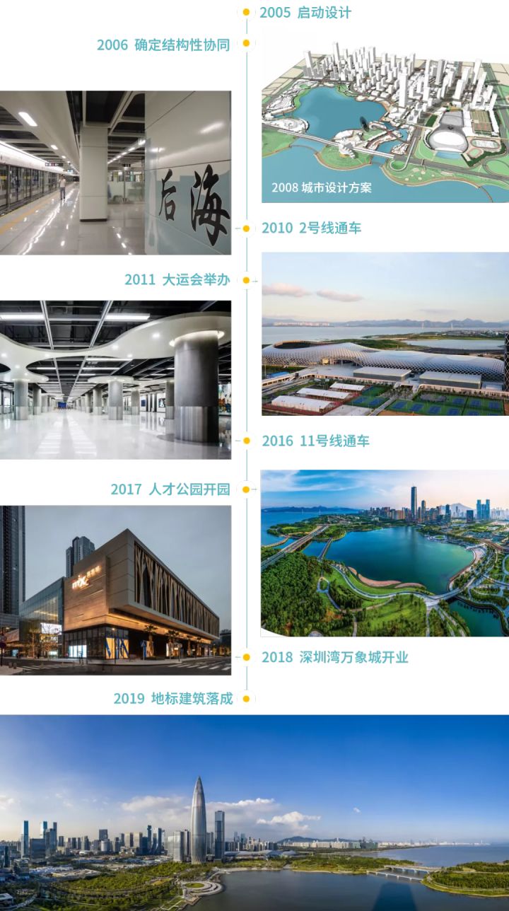 《南山后海中心区城市设计》系列规划至今历时十五载,先后经历“结构性设计-伴随式服务-评估与深化”三个阶段,项目团队从系统协同和到局部设计、全过程伴随实施,为深圳新公共中心的发展提供动态设计服务。